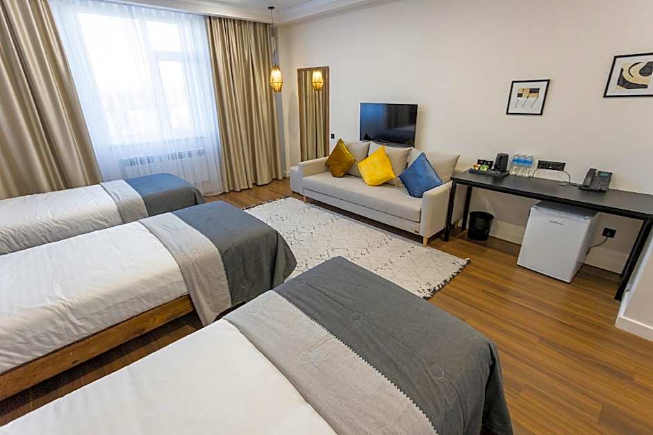 +1 (888) 389-8504Nestled just from the vibrant heart of Bishkek, is your perfect home away from home in Kyrgyzstan. This charming 4-star retreat offers a delightful blend of comfort and style, with a sprinkle of fun! Wake up to a tasty breakfast, included to fuel your adventures, then relax on your private balcony overlooking the lush garden and scenic views. Whether you're here for business or leisure, the hotel’s soundproof rooms and free Wi-Fi ensure a peaceful stay, while extra amenities like streaming services keep you entertained in your downtime.